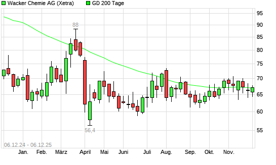 Mit dem Anstieg auf 67,15 EUR hat die Wacker Chemie-Aktie am 05.12.2025 die 200-Tage-Linie nach oben gekreuzt.Die Wacker Chemie-Aktie befand sich seit dem 20.11.2025 im langfristigen Aufwärtstrend ...weiterlesen