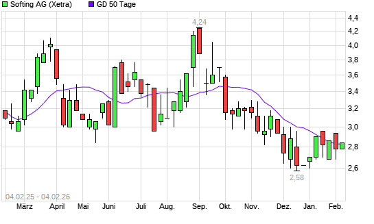 Mit dem Anstieg auf 2,74 EUR hat die Softing-Aktie am 03.02.2026 die 50-Tage-Linie nach oben gekreuzt.Die Softing-Aktie befindet sich seit dem 30.09.2025 im langfristigen Abwärtstrend und hat ...weiterlesen