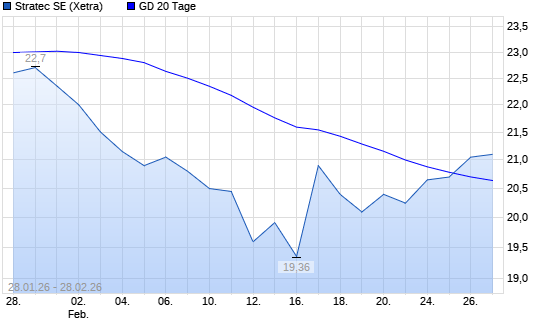 Mit dem Anstieg auf 20,60 EUR hat die Stratec-Aktie am 27.02.2026 die 20-Tage-Linie nach oben gekreuzt.Die Stratec-Aktie befindet sich seit dem 23.10.2025 im langfristigen Abwärtstrend ...weiterlesen