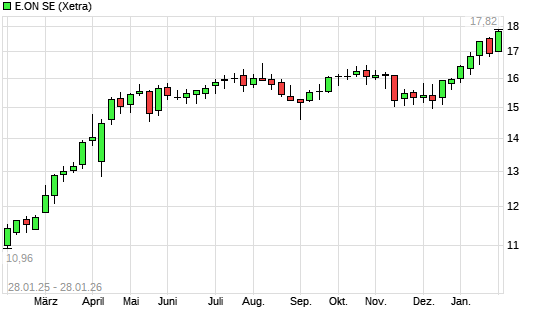 Mit dem Anstieg auf 17,61 EUR hat die E.ON-Aktie (ISIN DE000ENAG999) am 27.01.2026 ein neues 10-Jahres-Hoch erreicht und damit den Kurs vom 19.01.2026 eingestellt.Die E.ON-Aktie ...weiterlesen