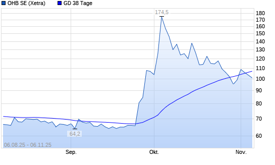 Mit dem Rücksetzer auf 104,00 EUR hat die OHB-Aktie am 05.11.2025 die 38-Tage-Linie nach unten gekreuzt.Die OHB-Aktie befindet sich seit dem 25.09.2025 im langfristigen ...weiterlesen
