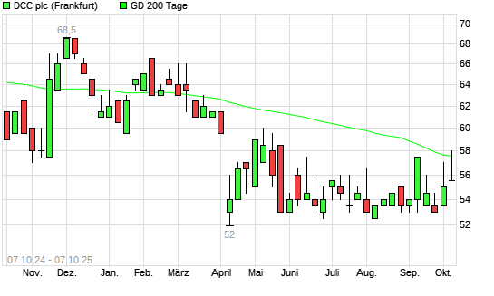 Mit dem Anstieg auf 58,00 EUR hat die DCC-Aktie am 06.10.2025 die 200-Tage-Linie nach oben gekreuzt.Die DCC-Aktie befand sich seit dem 21.03.2025 im langfristigen Aufwärtstrend und hat in diesem ...weiterlesen