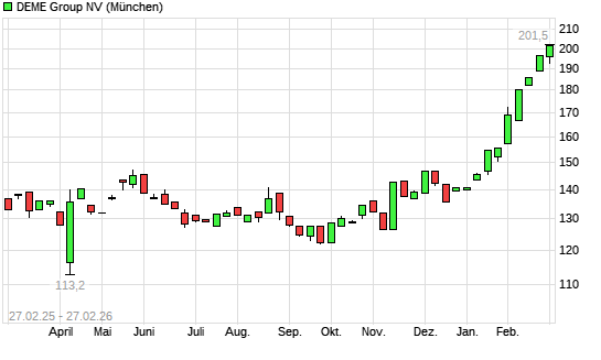 Mit dem Anstieg auf 200,00 EUR hat die DEME Group-Aktie (ISIN BE0974413453) am 26.02.2026 ein neues All-Time-High erreicht und damit den Kurs vom 20.02.2026 eingestellt.Die ...weiterlesen