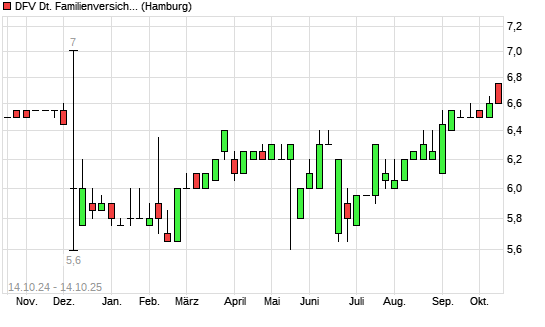 Mit dem Anstieg auf 6,75 EUR hat die DFV Deutsche Familienversicherung-Aktie (ISIN DE000A2NBVD5) am 13.10.2025 ein neues 12-Monats-Hoch erreicht und damit den Kurs vom 09.10.2025 eingestellt.Die ...weiterlesen
