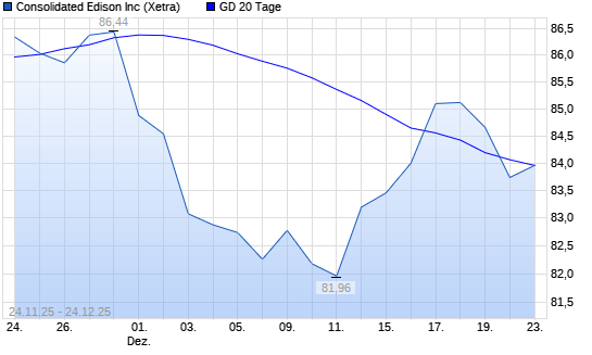 Mit dem Rücksetzer auf 83,52 EUR hat die Consolidated Edison-Aktie am 23.12.2025 die 20-Tage-Linie nach unten gekreuzt.Die Consolidated Edison-Aktie befindet sich seit dem 21.05.2025 im ...weiterlesen