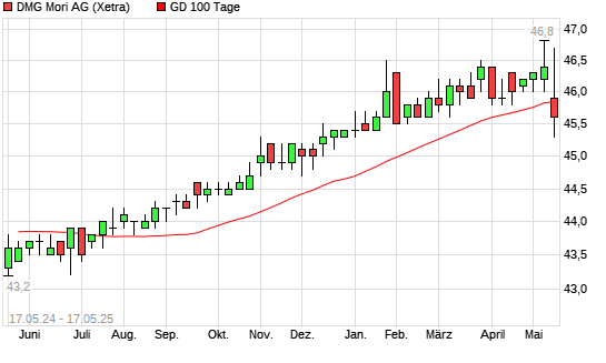 Mit dem Anstieg auf 45,90 EUR hat die DMG Mori-Aktie am 16.05.2025 die 100-Tage-Linie nach oben gekreuzt.Die DMG Mori-Aktie befindet sich seit dem 06.08.2024 im langfristigen Aufwärtstrend und ...weiterlesen