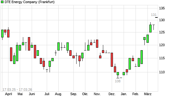 Mit dem Anstieg auf 131,00 EUR hat die DTE Energy Company-Aktie (ISIN US2333311072) am 16.03.2026 ein neues 3-Jahres-Hoch erreicht und damit den Kurs vom 05.03.2026 eingestellt.Die ...weiterlesen