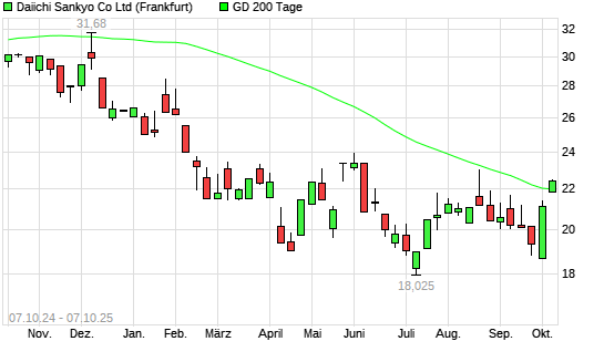 Mit dem Anstieg auf 22,46 EUR hat die Daiichi Sankyo-Aktie am 06.10.2025 die 200-Tage-Linie nach oben gekreuzt.Die Daiichi Sankyo-Aktie befand sich seit dem 05.12.2024 im langfristigen Aufwärtstrend ...weiterlesen