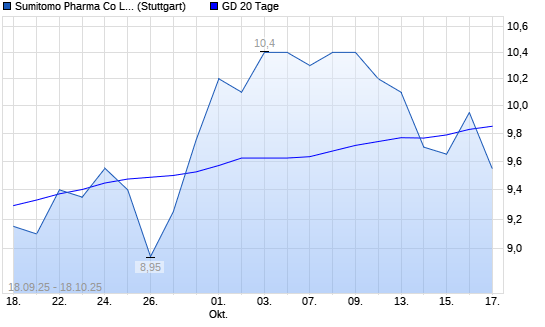 Mit dem Rücksetzer auf 9,75 EUR hat die Dainippon Sumitomo Pharma-Aktie am 17.10.2025 die 20-Tage-Linie nach unten gekreuzt.Die Dainippon Sumitomo Pharma-Aktie befindet sich seit dem 17.04.2025 ...weiterlesen