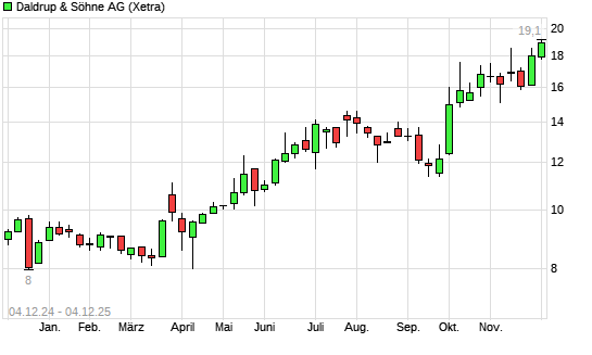 Mit dem Anstieg auf 19,10 EUR hat die Daldrup & Söhne-Aktie (ISIN DE0007830572) am 03.12.2025 ein neues 10-Jahres-Hoch erreicht und damit den Kurs vom 14.11.2025 eingestellt.Die Daldrup & Söhne-Aktie ...weiterlesen