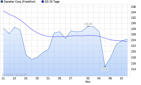 Mit dem Anstieg auf 223,85 EUR hat die Danaher-Aktie am 10.12.2024 die 20-Tage-Linie nach oben gekreuzt.Die Danaher-Aktie befindet sich seit dem 24.10.2024 im langfristigen Abwärtstrend und ...weiterlesen