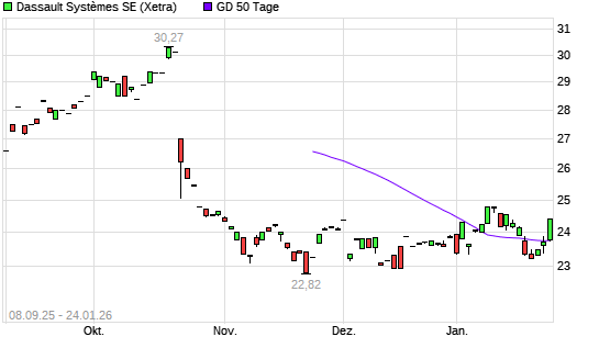 Mit dem Anstieg auf 23,76 EUR hat die Dassault Systèmes-Aktie am 23.01.2026 die 50-Tage-Linie nach oben gekreuzt.Die Dassault Systèmes-Aktie befindet sich seit dem 03.04.2025 im langfristigen ...weiterlesen