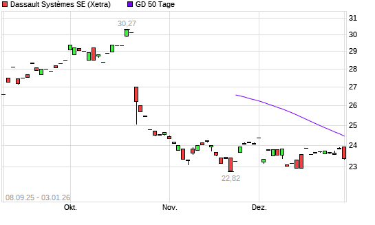 Mit dem Anstieg auf 23,86 EUR hat die Dassault Systèmes-Aktie am 02.01.2026 die 50-Tage-Linie nach oben gekreuzt.Die Dassault Systèmes-Aktie befindet sich seit dem 03.04.2025 ...weiterlesen