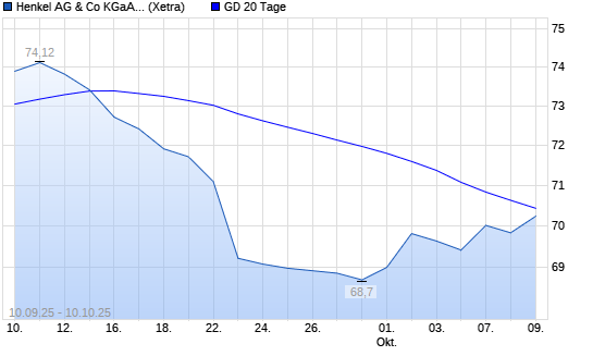 Mit dem Anstieg auf 70,54 EUR hat die Henkel Vz-Aktie am 09.10.2025 die 20-Tage-Linie nach oben gekreuzt.Die Henkel Vz-Aktie befindet sich seit dem 10.09.2025 im langfristigen Abwärtstrend und ...weiterlesen
