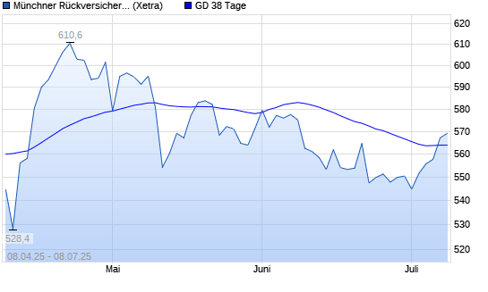 Mit dem Anstieg auf 566,80 EUR hat die Münchener Rück-Aktie am 07.07.2025 die 38-Tage-Linie nach oben gekreuzt.Die Münchener Rück-Aktie befindet sich seit dem 13.10.2022 im langfristigen ...weiterlesen