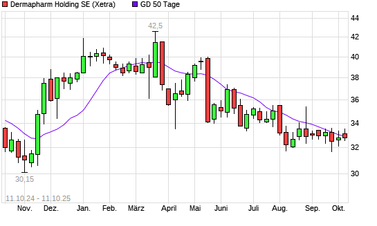 Mit dem Anstieg auf 33,00 EUR hat die Dermapharm Holding-Aktie am 10.10.2025 die 50-Tage-Linie nach oben gekreuzt.Die Dermapharm Holding-Aktie befindet sich seit dem 11.06.2025 im langfristigen ...weiterlesen