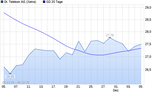 Mit dem Anstieg auf 27,48 EUR hat die Deutsche Telekom-Aktie am 04.12.2025 die 20-Tage-Linie nach oben gekreuzt.Die Deutsche Telekom-Aktie befindet sich seit dem 08.09.2025 im langfristigen ...weiterlesen