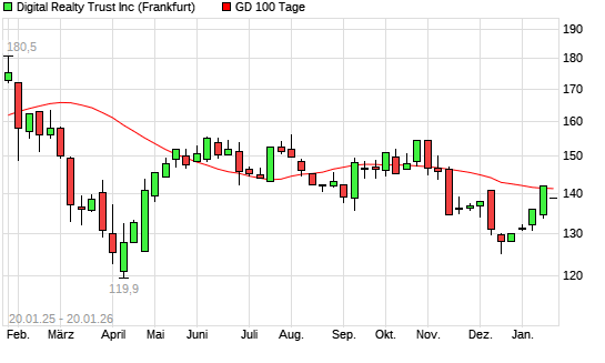 Mit dem Rücksetzer auf 138,80 EUR hat die Digital Realty Trust-Aktie am 19.01.2026 die 100-Tage-Linie nach unten gekreuzt.Die Digital Realty Trust-Aktie befindet sich seit dem 12.11.2025 ...weiterlesen