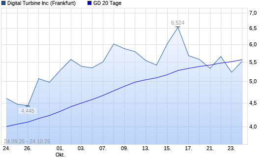 Mit dem Rücksetzer auf 5,23 EUR hat die Digital Turbine-Aktie am 23.10.2025 die 20-Tage-Linie nach unten gekreuzt.Die Digital Turbine-Aktie befindet sich seit dem 23.04.2025 im langfristigen ...weiterlesen