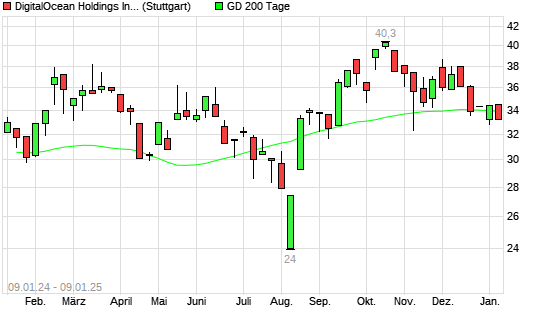 Mit dem Rücksetzer auf 33,64 EUR hat die DigitalOcean Holdings-Aktie am 08.01.2025 die 200-Tage-Linie nach unten gekreuzt.Die DigitalOcean Holdings-Aktie befand sich seit dem 03.01.2025 ...weiterlesen