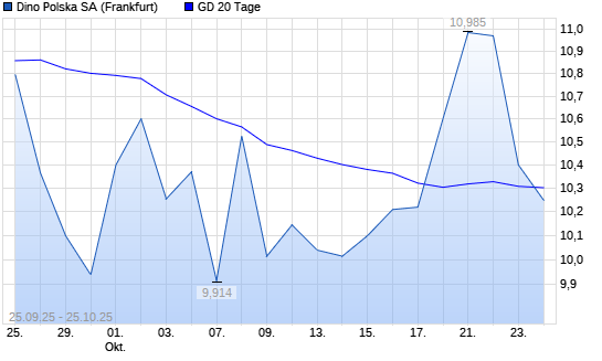 Mit dem Rücksetzer auf 10,25 EUR hat die Dino Polska SA-Aktie am 24.10.2025 die 20-Tage-Linie nach unten gekreuzt.Die Dino Polska SA-Aktie befindet sich seit dem 12.09.2025 im langfristigen ...weiterlesen
