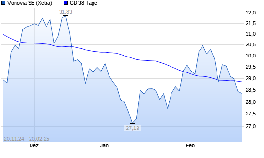 Mit dem Rücksetzer auf 28,59 EUR hat die Vonovia-Aktie am 19.02.2025 die 38-Tage-Linie nach unten gekreuzt.Die Vonovia-Aktie befindet sich seit dem 12.02.2025 im langfristigen Abwärtstrend ...weiterlesen