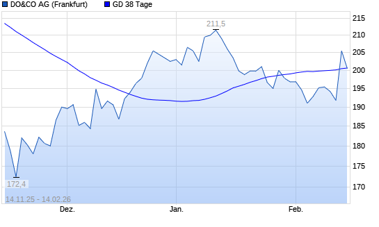 Mit dem Anstieg auf 209,50 EUR hat die Do & Co-Aktie am 13.02.2026 die 38-Tage-Linie nach oben gekreuzt.Die Do & Co-Aktie befindet sich seit dem 12.02.2026 im ...weiterlesen