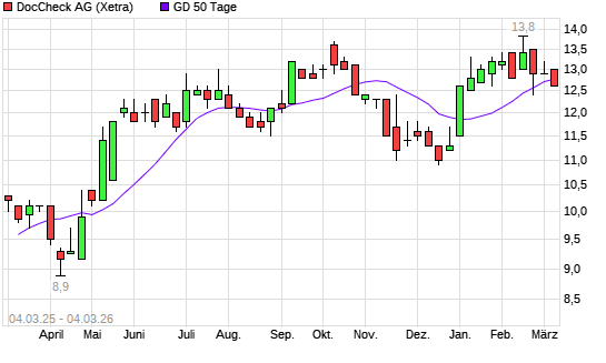Mit dem Rücksetzer auf 12,60 EUR hat die DocCheck-Aktie am 03.03.2026 die 50-Tage-Linie nach unten gekreuzt.Die DocCheck-Aktie befindet sich seit dem 29.12.2025 im ...weiterlesen