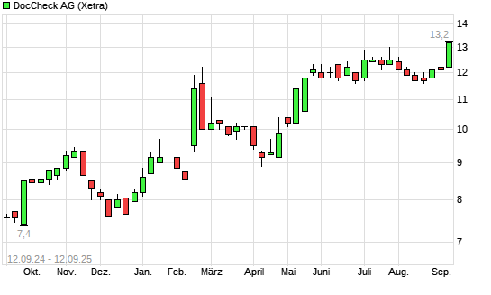 Mit dem Anstieg auf 13,00 EUR hat die DocCheck-Aktie (ISIN DE000A1A6WE6) am 11.09.2025 ein neues 12-Monats-Hoch erreicht und damit den Kurs vom 09.09.2025 eingestellt.Die ...weiterlesen