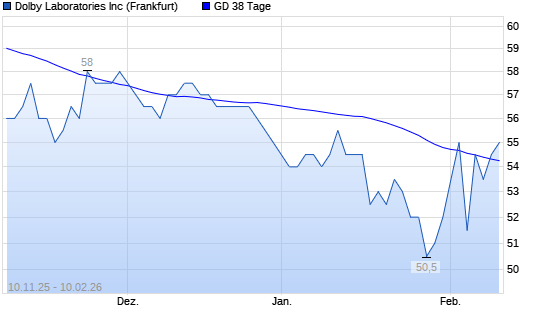 Mit dem Anstieg auf 54,50 EUR hat die Dolby-Aktie am 09.02.2026 die 38-Tage-Linie nach oben gekreuzt.Die Dolby-Aktie befindet sich seit dem 03.04.2025 im langfristigen Abwärtstrend und hat in ...weiterlesen