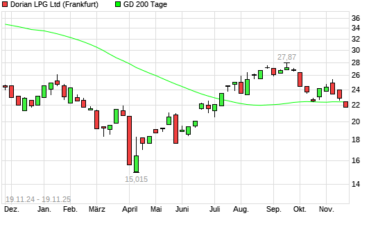 Mit dem Rücksetzer auf 21,70 EUR hat die Dorian LPG-Aktie am 18.11.2025 die 200-Tage-Linie nach unten gekreuzt.Die Dorian LPG-Aktie befand sich seit dem 10.07.2025 im langfristigen Aufwärtstrend ...weiterlesen