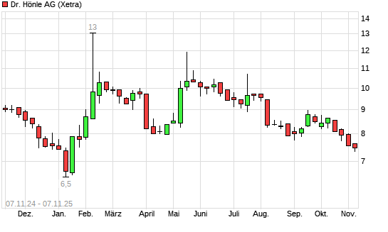 Mit dem Rücksetzer auf 7,10 EUR hat die Dr. Hönle-Aktie (ISIN DE0005157101) am 06.11.2025 ein neues 6-Monats-Tief erreicht und damit den Kurs vom 04.11.2025 eingestellt.Die Dr. Hönle-Aktie ...weiterlesen