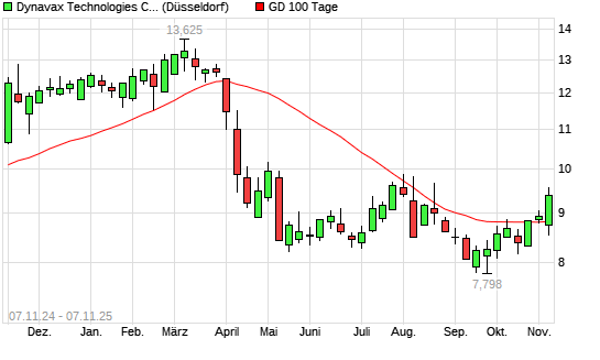 Mit dem Anstieg auf 8,67 EUR hat die Dynavax Technologies-Aktie am 06.11.2025 die 100-Tage-Linie nach oben gekreuzt.Die Dynavax Technologies-Aktie befindet sich seit dem 09.04.2025 im langfristigen ...weiterlesen