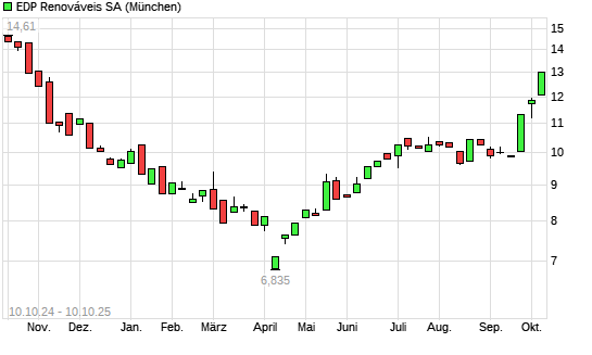 Mit dem Anstieg auf 13,00 EUR hat die EDP Renováveis-Aktie (ISIN ES0127797019) am 09.10.2025 ein neues 6-Monats-Hoch erreicht und damit den Kurs vom 08.10.2025 eingestellt.Die EDP Renováveis-Aktie ...weiterlesen