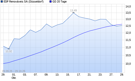Mit dem Rücksetzer auf 12,78 EUR hat die EDP Renováveis-Aktie am 28.10.2025 die 20-Tage-Linie nach unten gekreuzt.Die EDP Renováveis-Aktie befindet sich seit dem 02.07.2025 ...weiterlesen