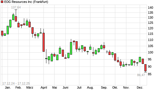 Mit dem Rücksetzer auf 86,47 EUR hat die EOG Resources-Aktie (ISIN US26875P1012) am 16.12.2025 ein neues 3-Jahres-Tief erreicht und damit den Kurs vom 15.12.2025 eingestellt.Die EOG Resources-Aktie ...weiterlesen