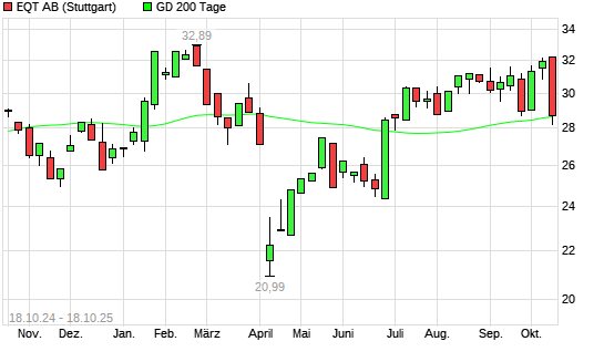 Mit dem Rücksetzer auf 27,66 EUR hat die EQT AB-Aktie am 17.10.2025 die 200-Tage-Linie nach unten gekreuzt.Die EQT AB-Aktie befand sich seit dem 26.06.2025 im langfristigen Abwärtstrend ...weiterlesen