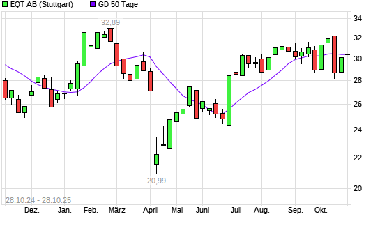 Mit dem Anstieg auf 30,38 EUR hat die EQT AB-Aktie am 27.10.2025 die 50-Tage-Linie nach oben gekreuzt.Die EQT AB-Aktie befindet sich seit dem 20.10.2025 im langfristigen Aufwärtstrend und hat ...weiterlesen