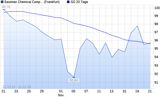 Mit dem Rücksetzer auf 95,48 EUR hat die Eastman Chemical Company-Aktie am 20.11.2024 die 20-Tage-Linie nach unten gekreuzt.Die Eastman Chemical Company-Aktie befindet sich seit dem 29.11.2023 ...weiterlesen