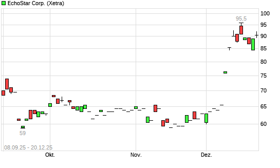 Mit dem Anstieg auf 92,00 EUR hat die EchoStar Corp.-Aktie (ISIN US2787681061) am 19.12.2025 ein neues All-Time-High erreicht und damit den Kurs vom 12.12.2025 eingestellt.Die EchoStar Corp.-Aktie ...weiterlesen