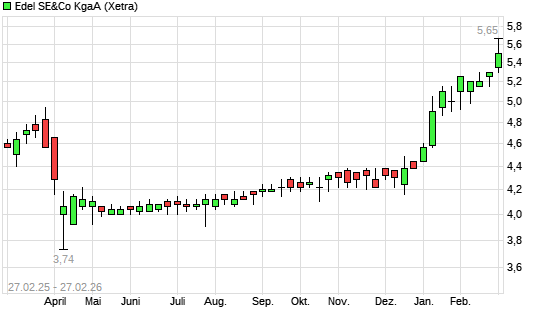 Mit dem Anstieg auf 5,60 EUR hat die Edel-Aktie (ISIN DE0005649503) am 26.02.2026 ein neues 10-Jahres-Hoch erreicht und damit den Kurs vom 25.02.2026 eingestellt.Die Edel-Aktie ...weiterlesen