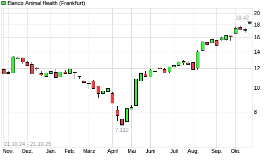 Mit dem Anstieg auf 18,68 EUR hat die Elanco Animal Health-Aktie (ISIN US28414H1032) am 20.10.2025 ein neues 3-Jahres-Hoch erreicht und damit den Kurs vom 17.10.2025 eingestellt.Die Elanco Animal ...weiterlesen