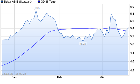 Mit dem Anstieg auf 5,27 EUR hat die Elekta B-Aktie am 17.03.2026 die 38-Tage-Linie nach oben gekreuzt.Die Elekta B-Aktie befindet sich seit dem 26.11.2025 im langfristigen ...weiterlesen