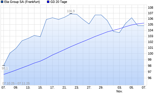 Mit dem Rücksetzer auf 104,80 EUR hat die Elia System Operator-Aktie am 06.11.2025 die 20-Tage-Linie nach unten gekreuzt.Die Elia System Operator-Aktie befindet sich seit dem 11.04.2025 ...weiterlesen