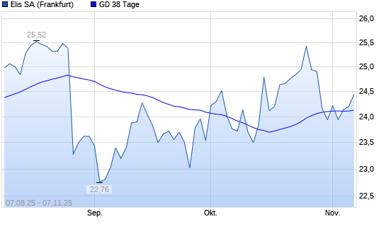 Mit dem Anstieg auf 24,32 EUR hat die Elis Ord Shs-Aktie am 06.11.2025 die 38-Tage-Linie nach oben gekreuzt.Die Elis Ord Shs-Aktie befindet sich seit dem 10.04.2025 im ...weiterlesen