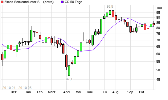 Mit dem Rücksetzer auf 80,60 EUR hat die Elmos Semiconductor-Aktie am 28.10.2025 die 50-Tage-Linie nach unten gekreuzt.Die Elmos Semiconductor-Aktie befindet sich seit dem ...weiterlesen