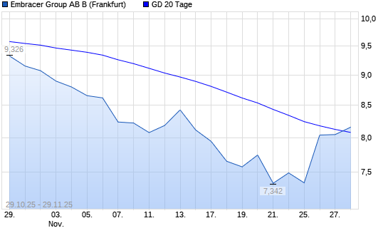 Mit dem Anstieg auf 8,16 EUR hat die Embracer Group-Aktie am 28.11.2025 die 20-Tage-Linie nach oben gekreuzt.Die Embracer Group-Aktie befindet sich seit dem 17.10.2025 im langfristigen Abwärtstrend ...weiterlesen