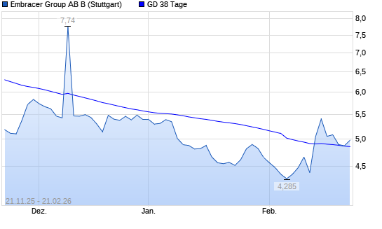 Mit dem Rücksetzer auf 4,86 EUR hat die Embracer Group-Aktie am 20.02.2026 die 38-Tage-Linie nach unten gekreuzt.Die Embracer Group-Aktie befindet sich seit dem 17.10.2025 ...weiterlesen