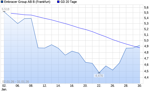 Mit dem Anstieg auf 4,92 EUR hat die Embracer Group-Aktie am 30.01.2026 die 20-Tage-Linie nach oben gekreuzt.Die Embracer Group-Aktie befindet sich seit dem 17.10.2025 im ...weiterlesen