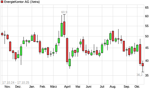 Mit dem Rücksetzer auf 37,55 EUR hat die Energiekontor-Aktie (ISIN DE0005313506) am 16.10.2025 ein neues 3-Jahres-Tief erreicht und damit den Kurs vom 15.10.2025 eingestellt.Die Energiekontor-Aktie ...weiterlesen